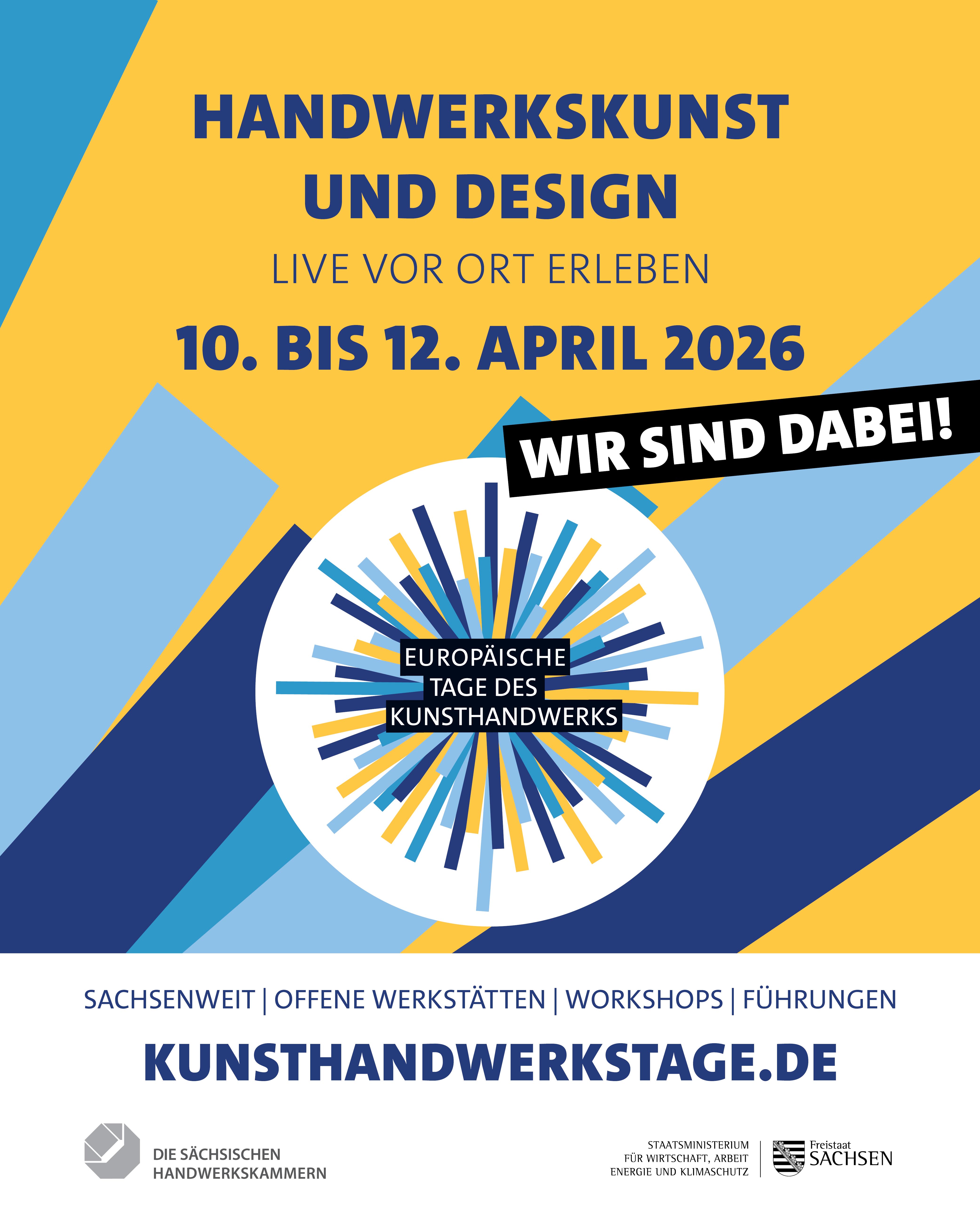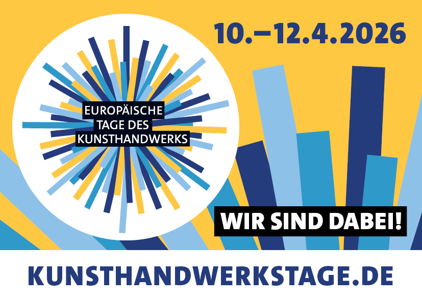 Um Ihre Öffentlichkeitsarbeit zu unterstützen, statten wir Sie mit verschiedenen kostenlosen Materialien aus, mit denen Sie Werbung für sich und die Europäischen Tage des Kunsthandwerks machen können. Nutzen Sie die Werbematerialien in unserem Downloadbereich!